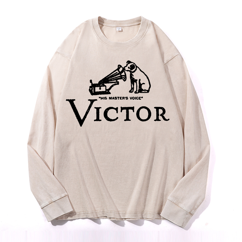 JVC Victor Dog Vintage Cotton Wash Crewneck Long-Sleeve T-Shirt