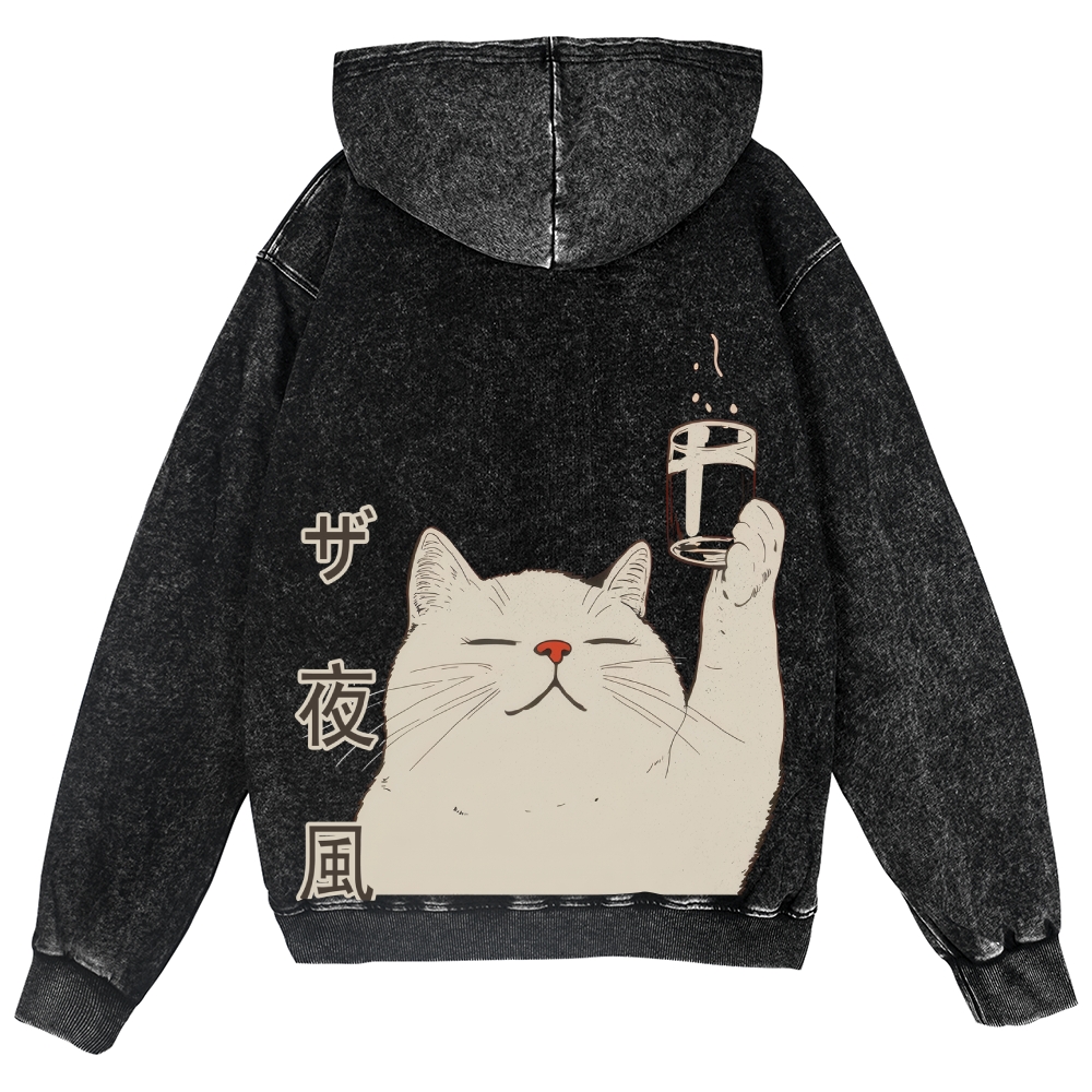 Cat Vintage Wash Zip Hoodie