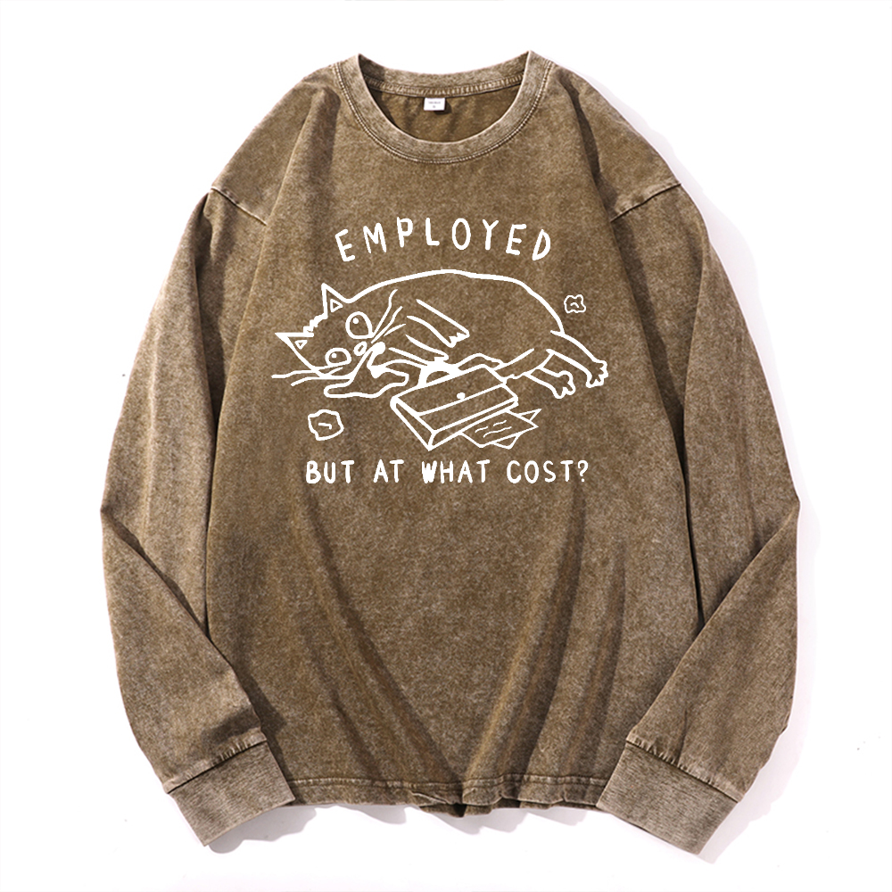 Cat Vintage Cotton Wash Crewneck Long-Sleeve T-Shirt