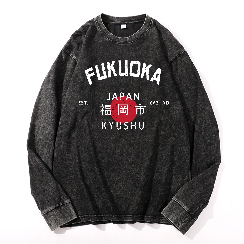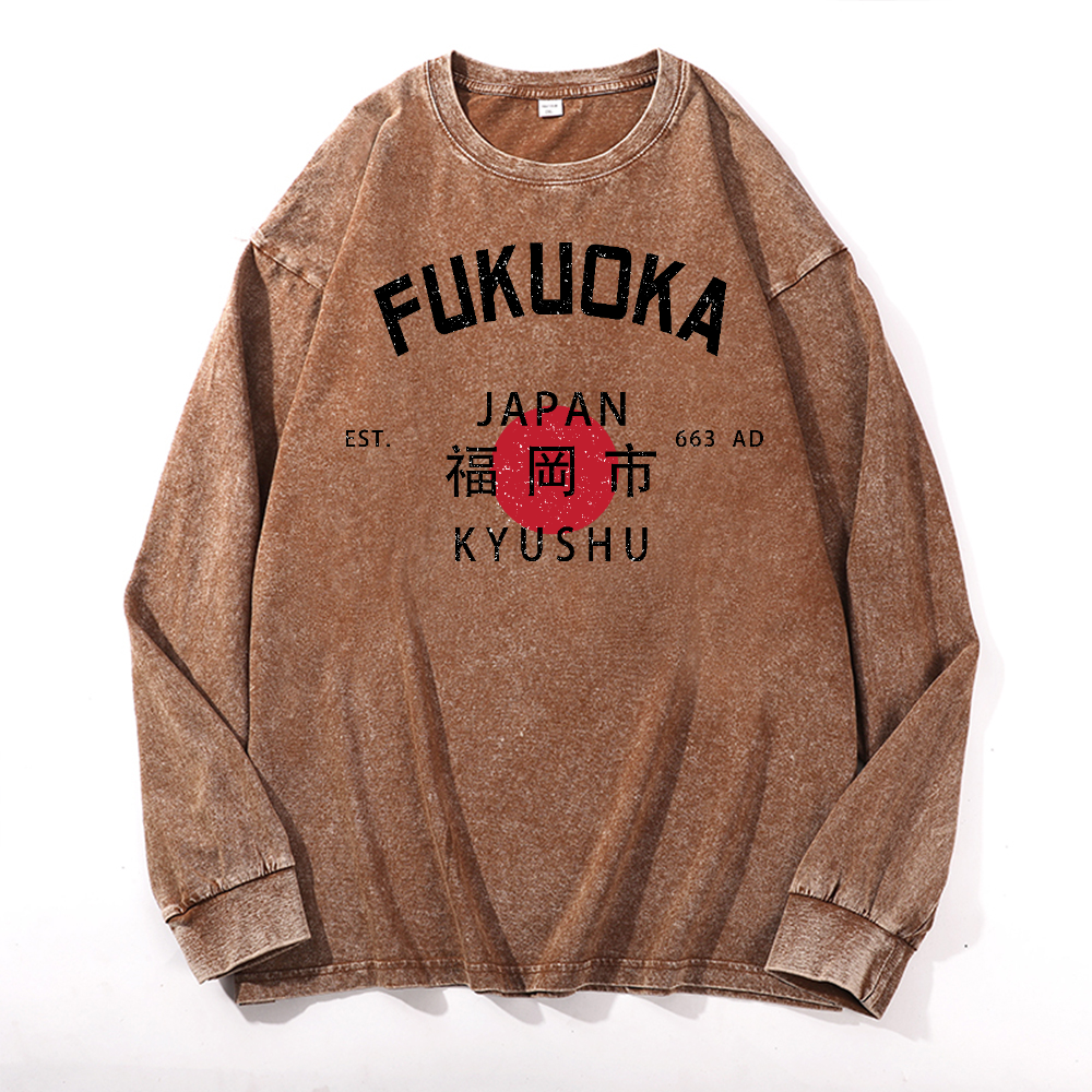 Fukuoka Vintage Cotton Wash Crewneck Long-Sleeve T-Shirt