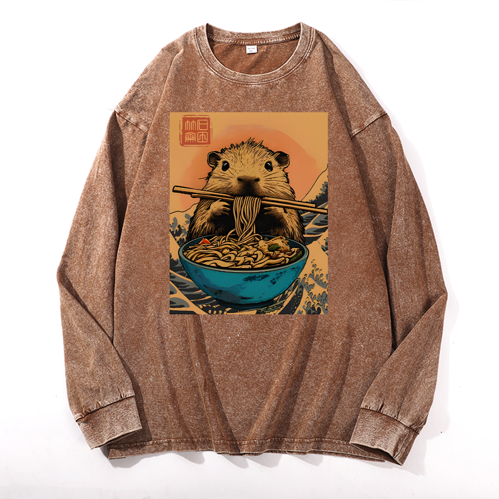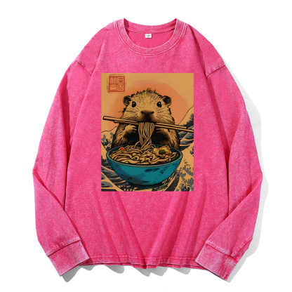 Guinea Pig Vintage Cotton Wash Crewneck Long-Sleeve T-Shirt