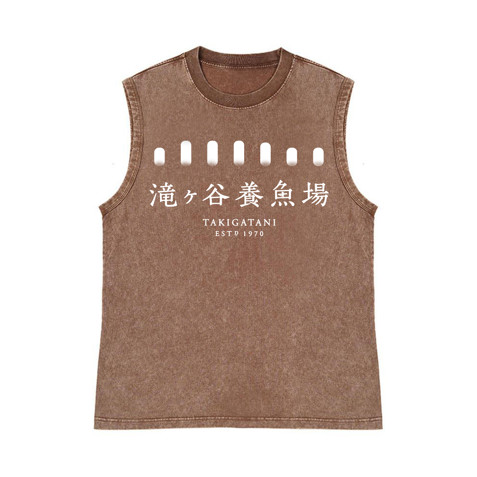 Takigatani Fish Farm Pure Cotton Wash-Dyed Sleeveless Tank Top