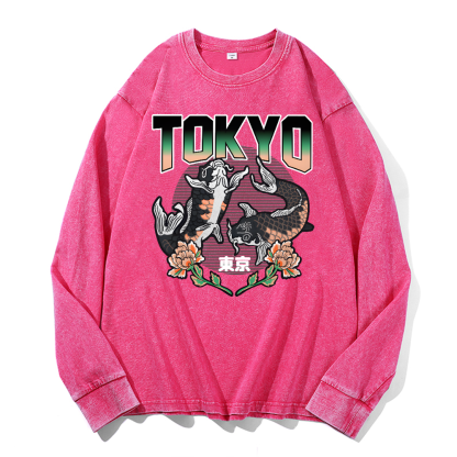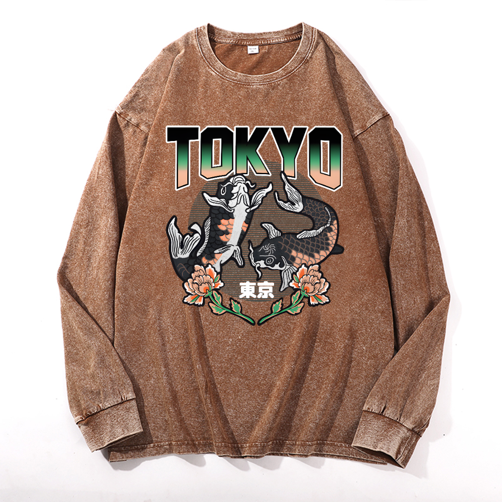 Tokyo Koi Vintage Cotton Wash Crewneck Long-Sleeve T-Shirt