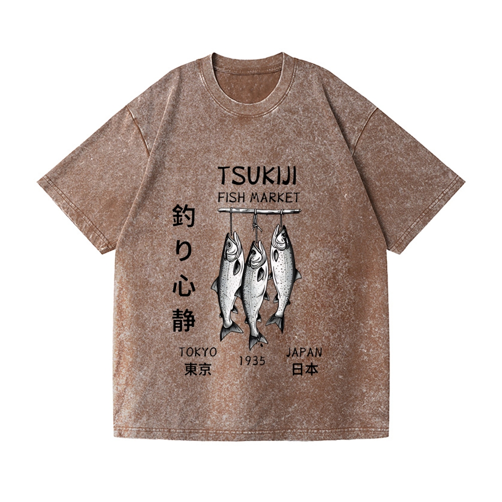 Tsukiji Fish Market Vintage Wash Japanese Design T-Shirt
