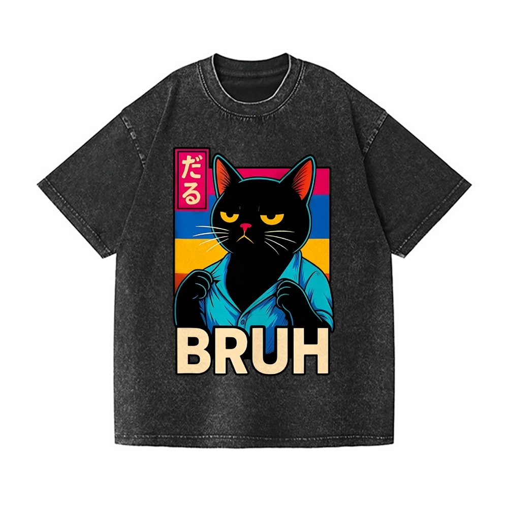 Funny Cat Bruh Vintage Wash Japanese Design T-Shirt