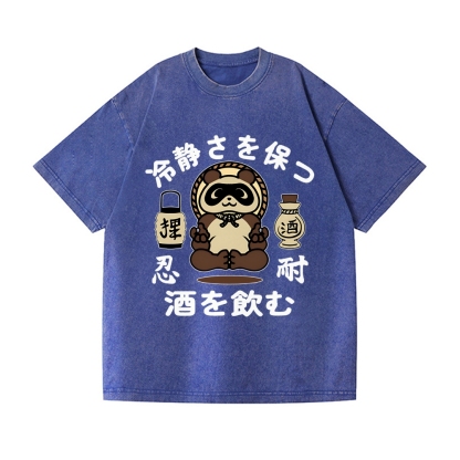 Calm Sake Racoon Vintage Wash Japanese Design T-Shirt