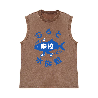 Fish Pure Cotton Wash-Dyed Sleeveless Tank Top