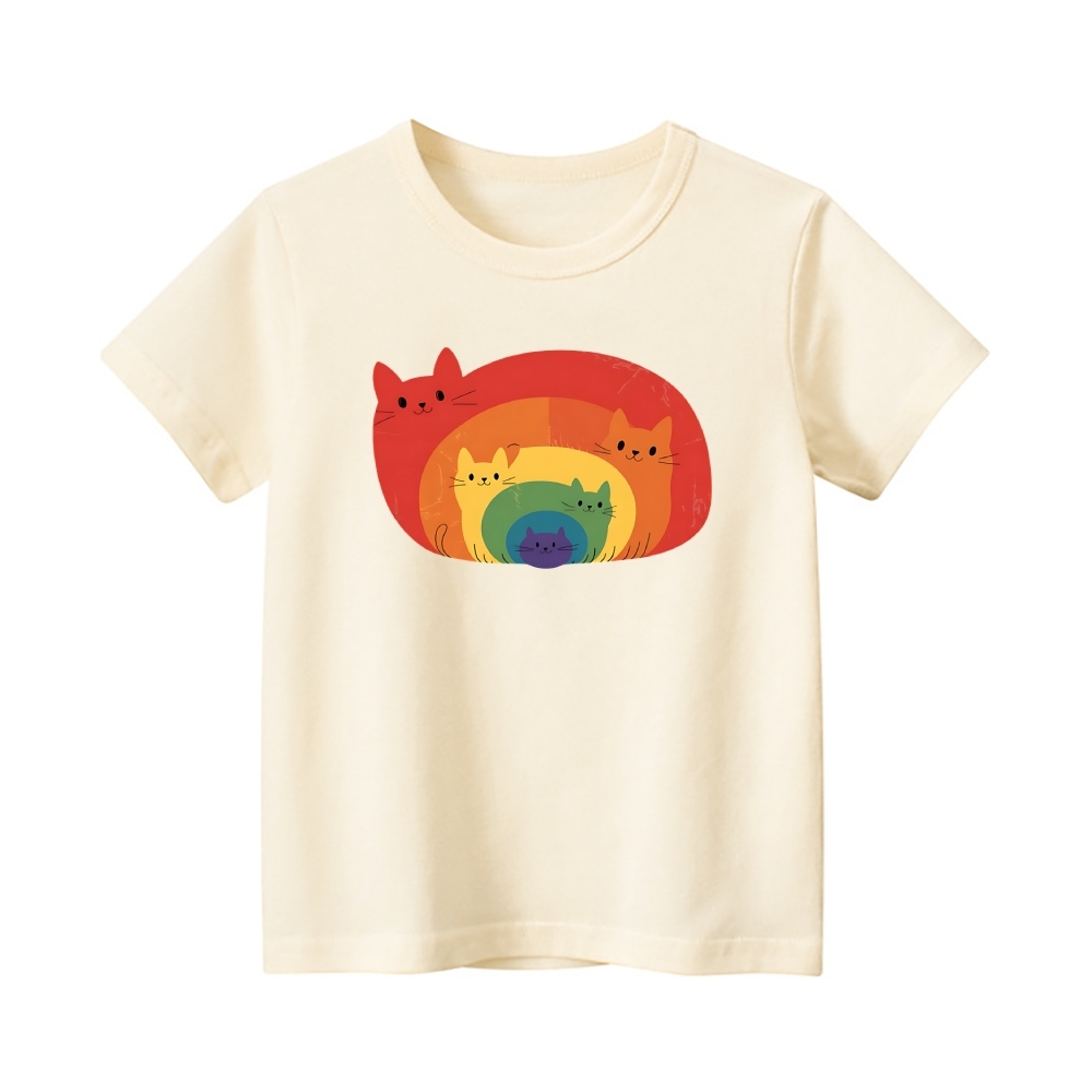 Rainbow Cat Vintage Kids Cotton T-shirt
