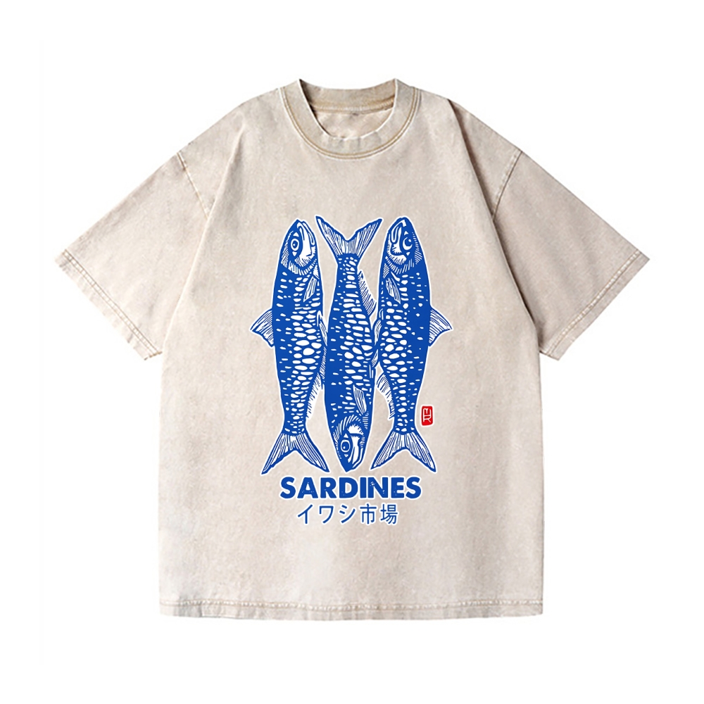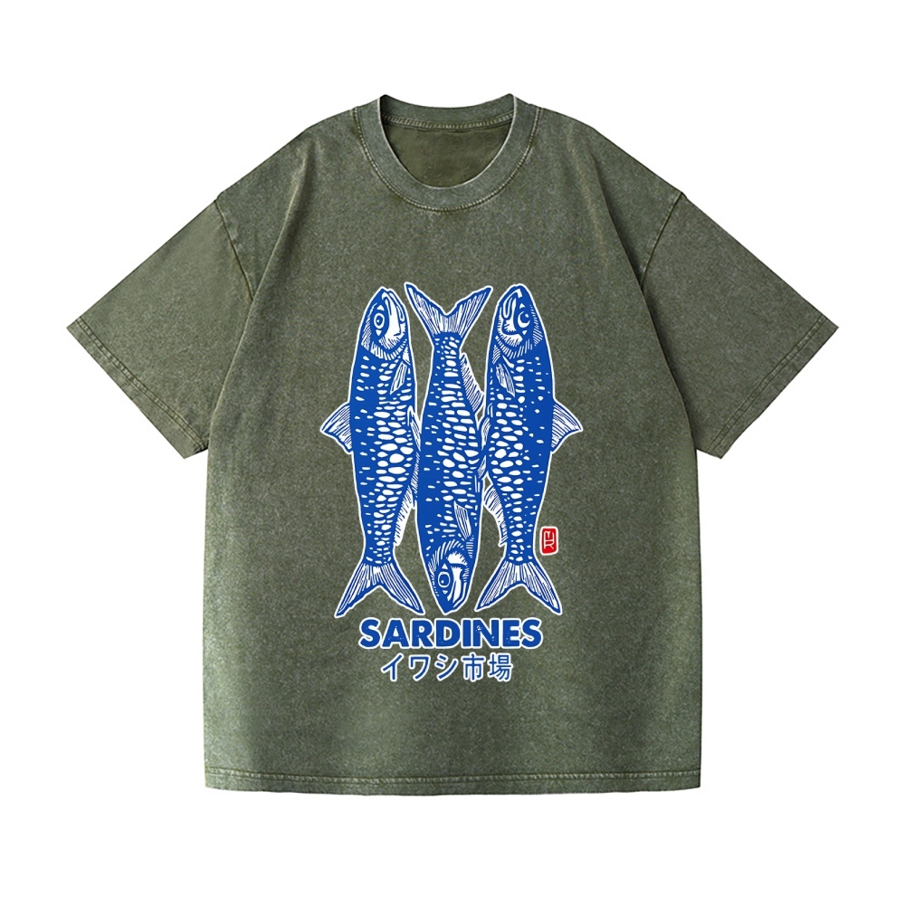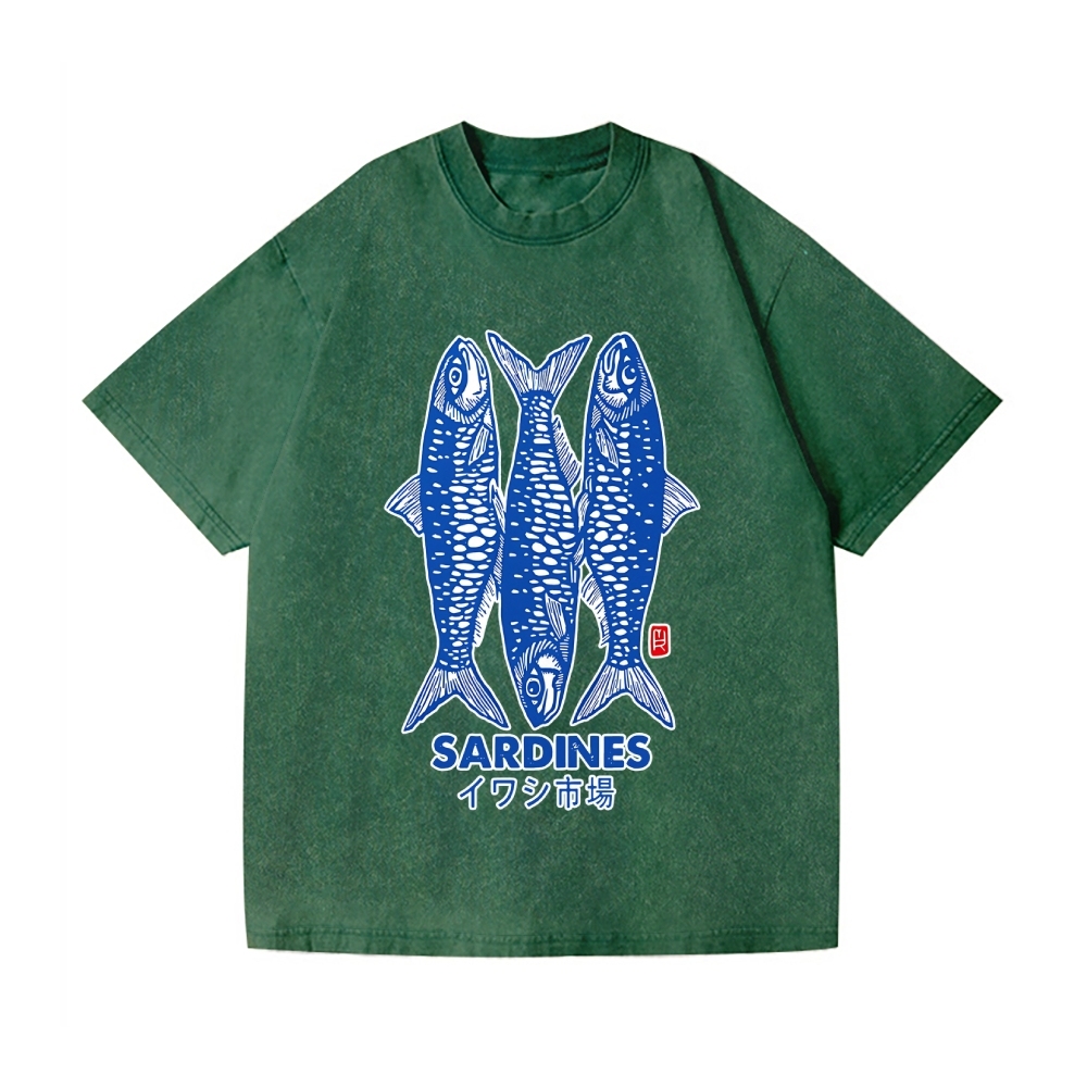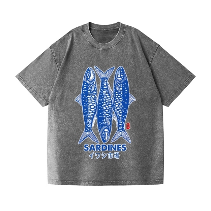 Sardines Fish Vintage Wash Japanese Design T-Shirt