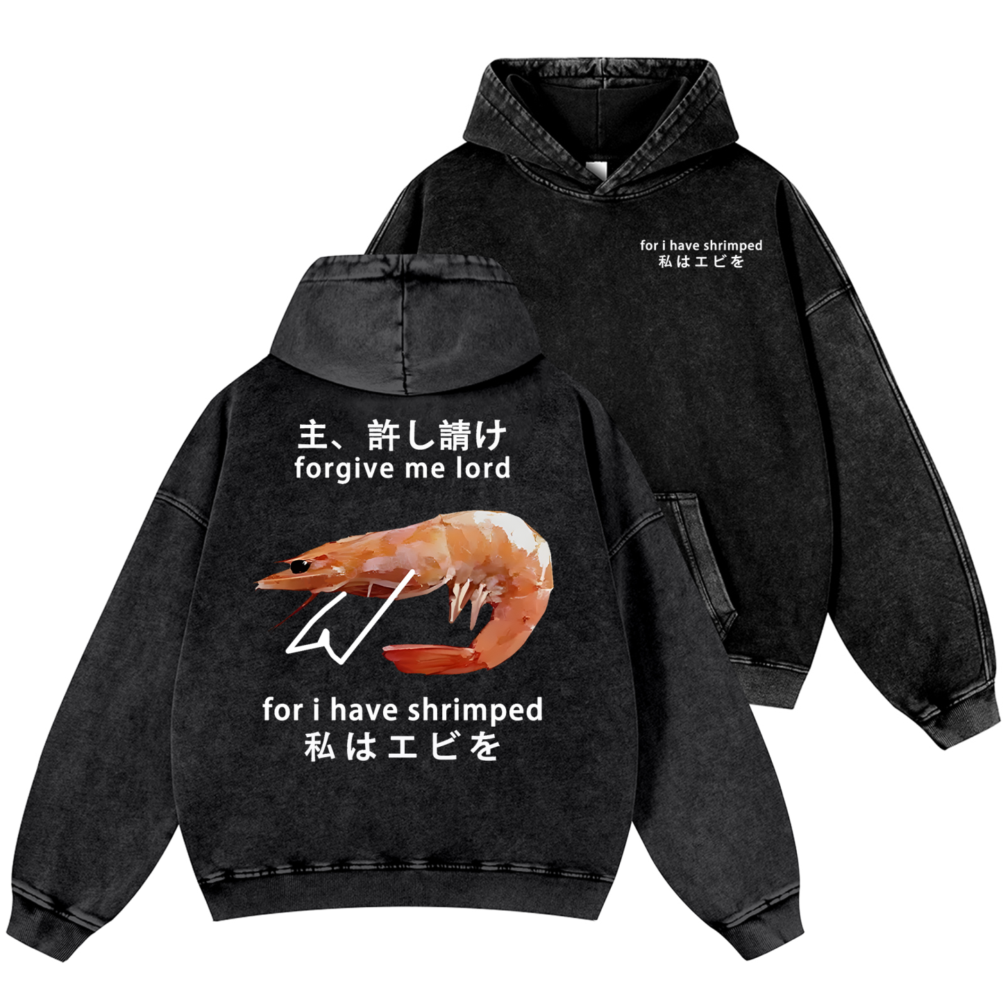 Shrimp Vintage Washed Cotton Back Art Hoodie