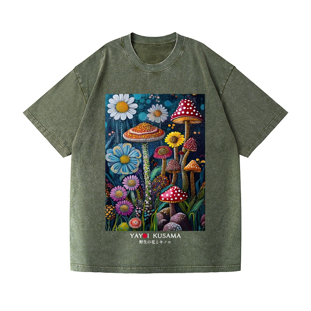 Yayoi Kusama Mushroom Vintage Wash Japanese Design T-Shirt