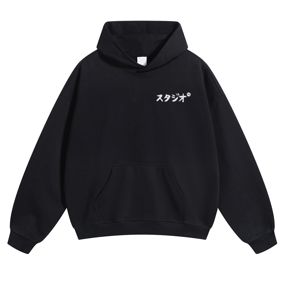 Featuring a Japanese-inspired graphic print, this hoodie blends minimalism with a vintage touch.