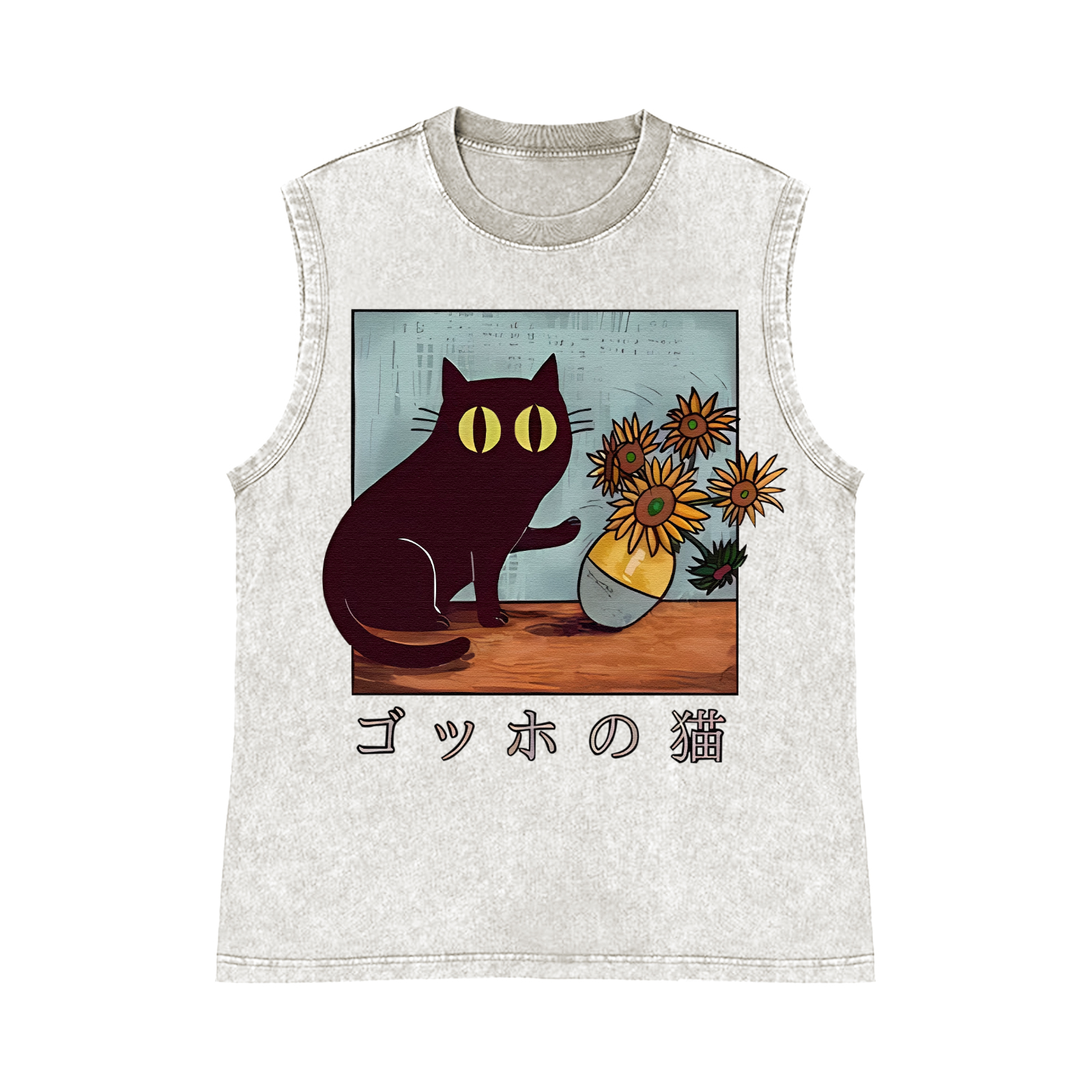 Lucky Cat Pure Cotton Wash-Dyed Sleeveless Tank Top