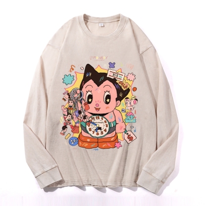 Astro Boy Vintage Cotton Wash Crewneck Long-Sleeve T-Shirt
