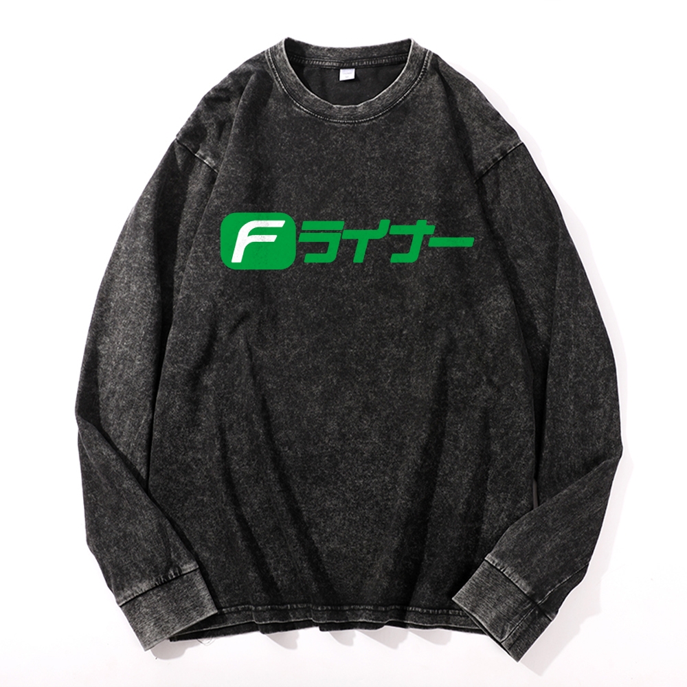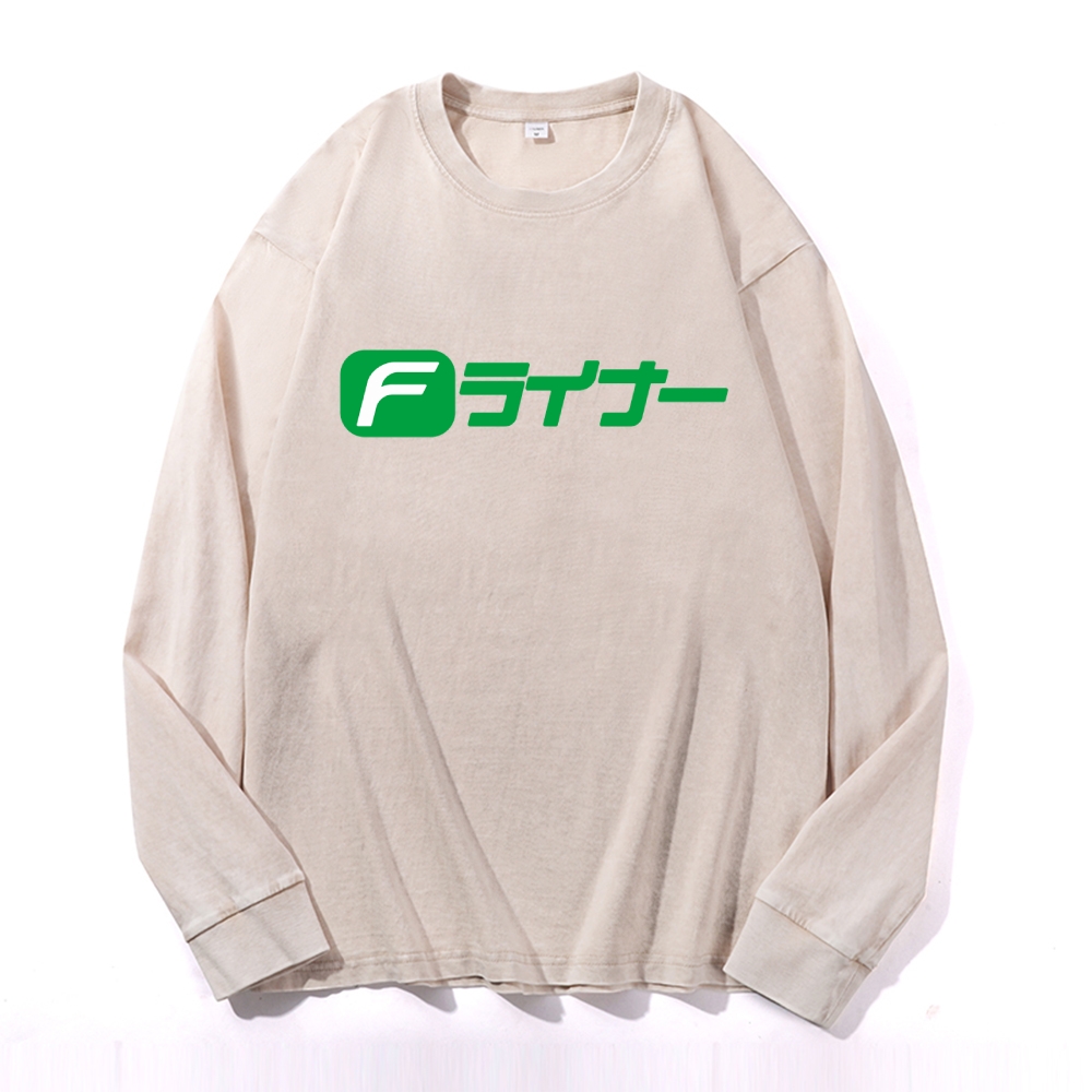 F Line Vintage Cotton Wash Crewneck Long-Sleeve T-Shirt