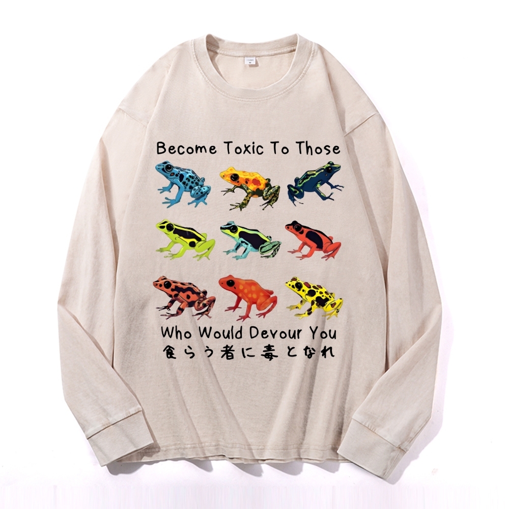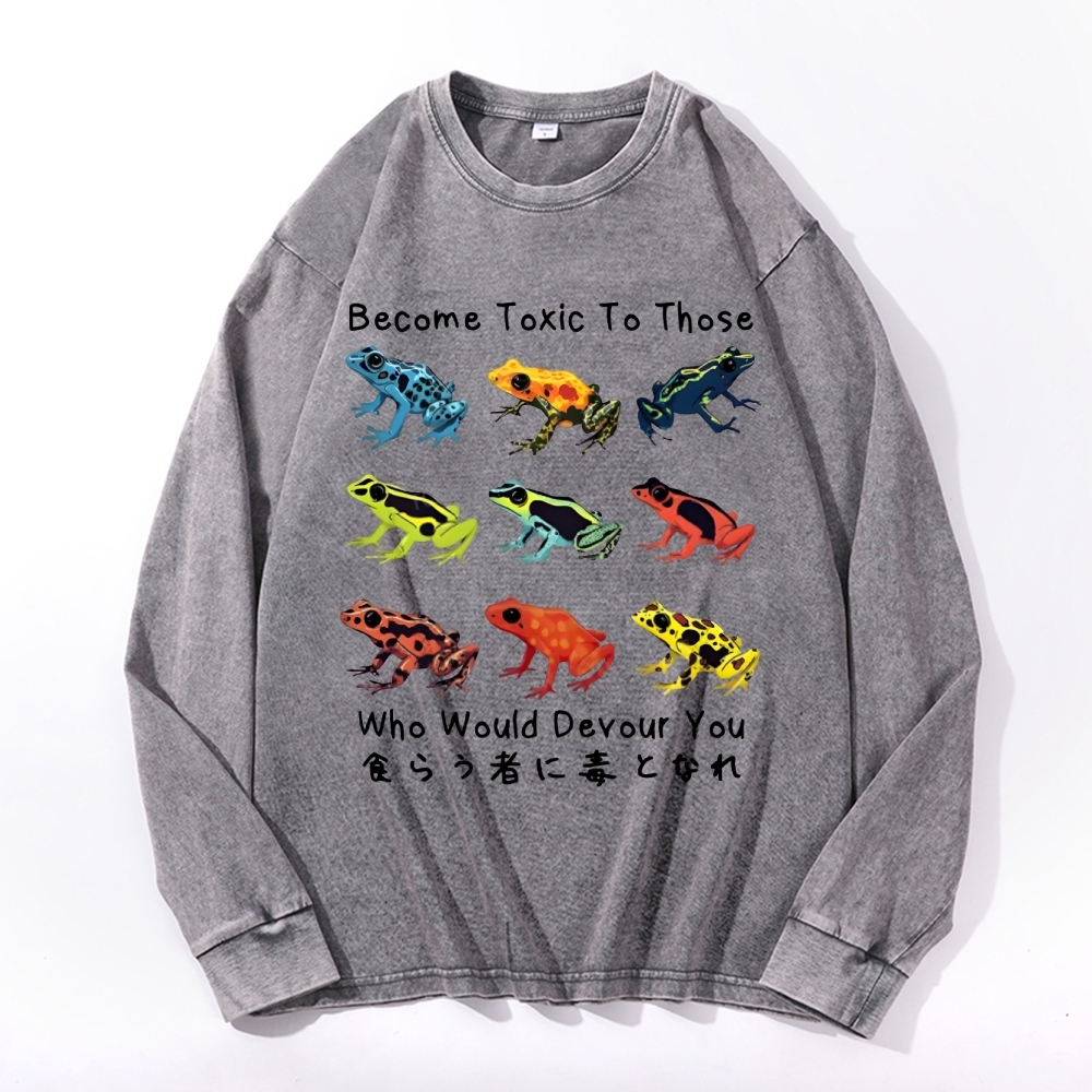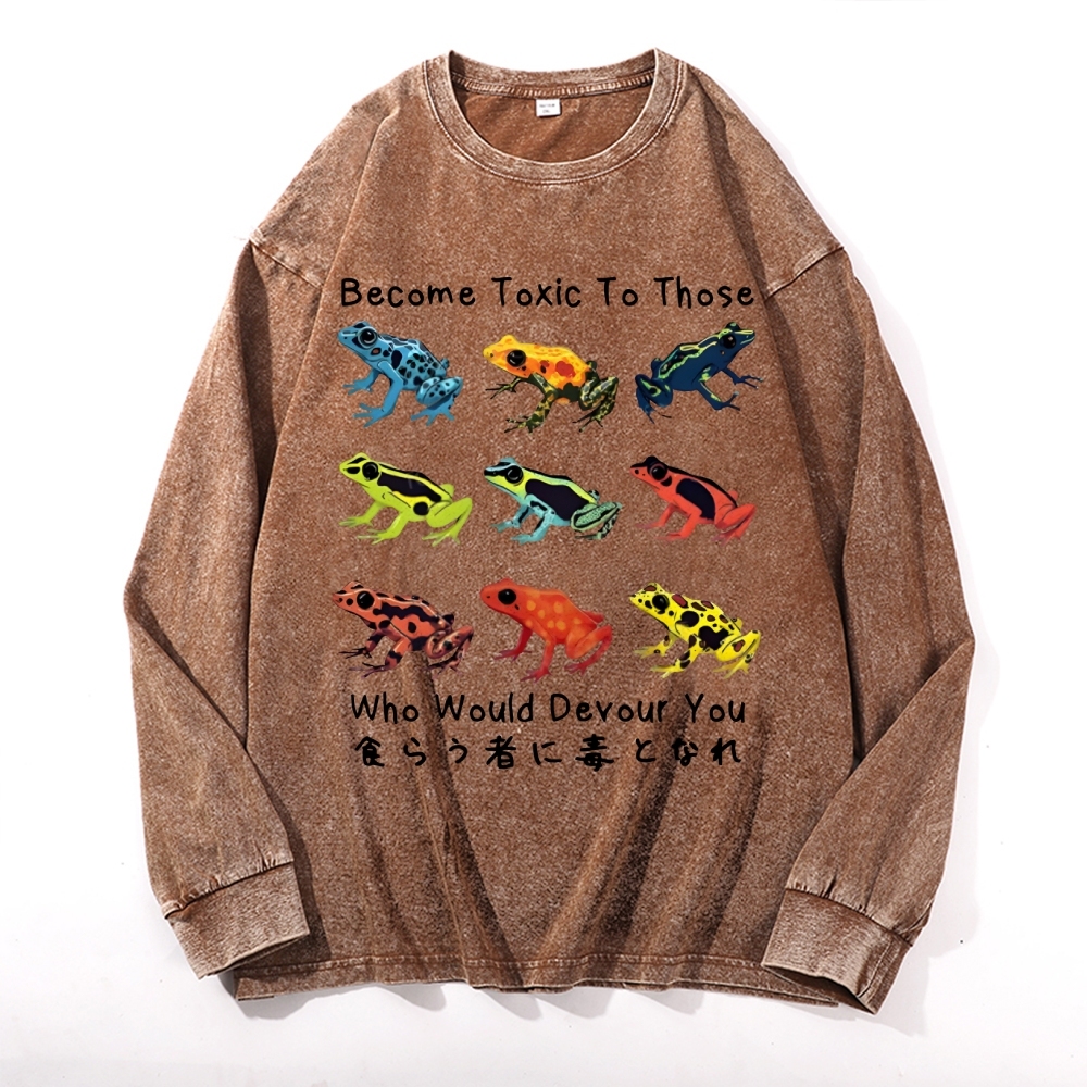 Fun Frog Poison Your Devourer Vintage Cotton Wash Crewneck Long-Sleeve T-Shirt