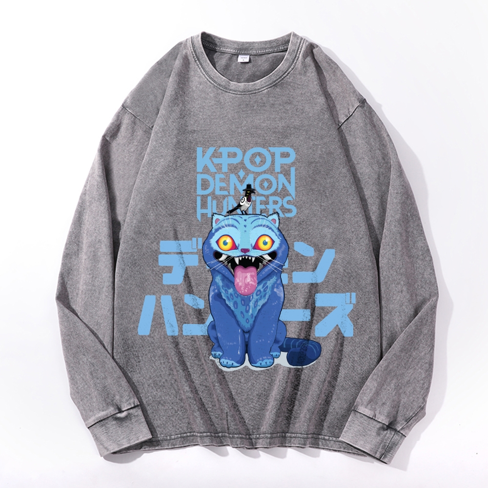 Kpop Demon Hunter Tiger Vintage Cotton Wash Crewneck Long-Sleeve T-Shirt