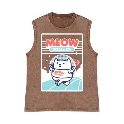 Meow Pure Cotton Wash-Dyed Sleeveless Tank Top
