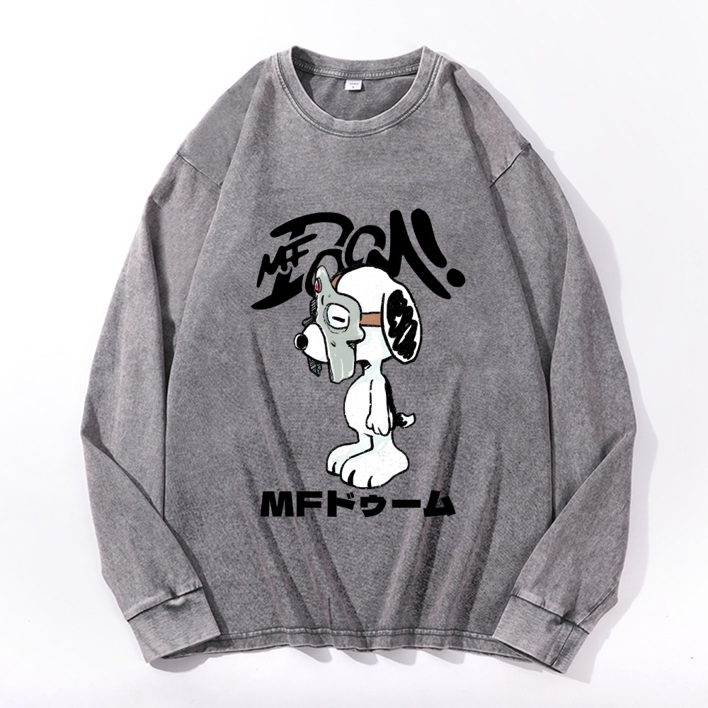 MF Doom Vintage Cotton Wash Crewneck Long-Sleeve T-Shirt