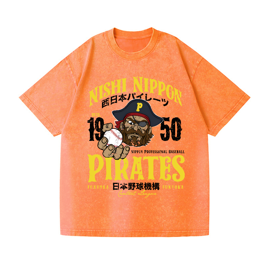 Nishi Nippon Pirates Baseball Vintage Wash Japanese Design T-Shirt