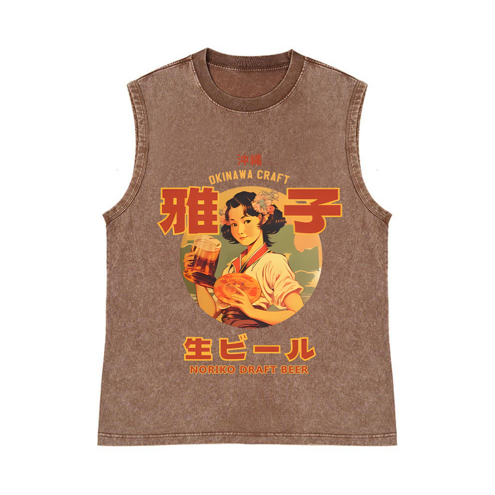 Okinawa Noriko Draft Beer Pure Cotton Wash-Dyed Sleeveless Tank Top