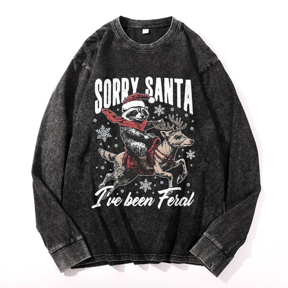 Raccoon Christmas Vintage Cotton Wash Crewneck Long-Sleeve T-Shirt