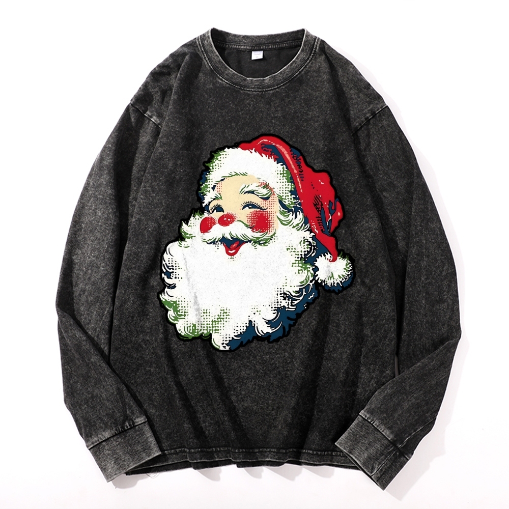 Santa Claus Vintage Cotton Wash Crewneck Long-Sleeve T-Shirt