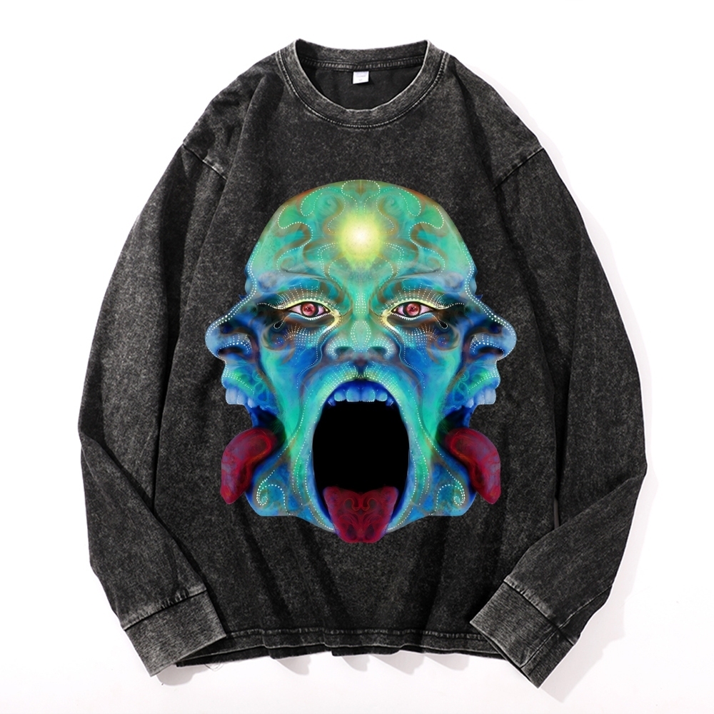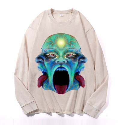 The many faces Vintage Cotton Wash Crewneck Long-Sleeve T-Shirt