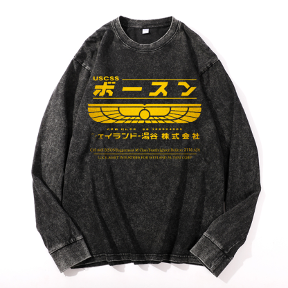 Weyland Yutani Vintage Cotton Wash Crewneck Long-Sleeve T-Shirt