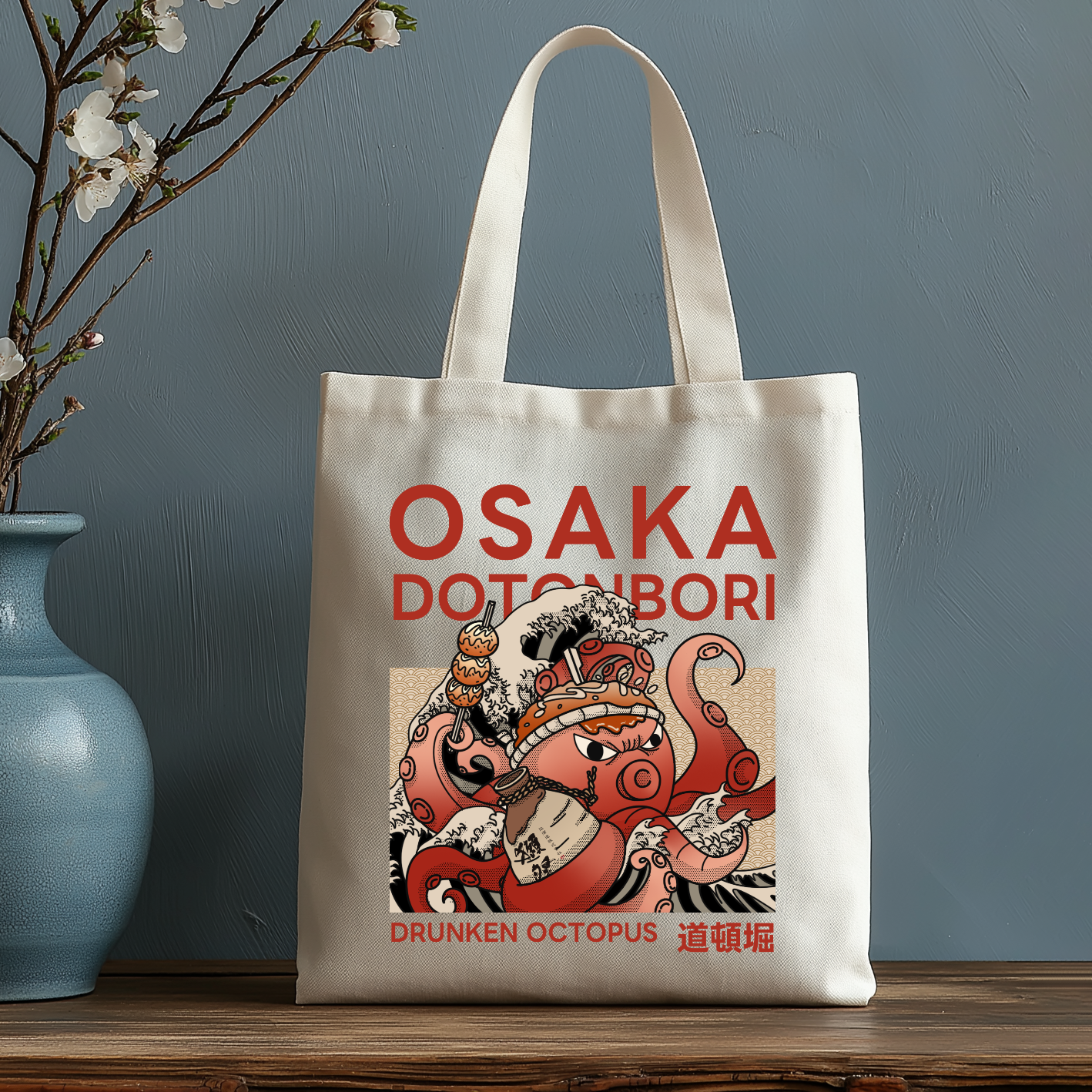 Osaka Dotonbori Drunken Octopus Japanese Style Canvas Tote Bag