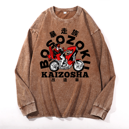 Bosozoku Vintage Cotton Wash Crewneck Long-Sleeve T-Shirt