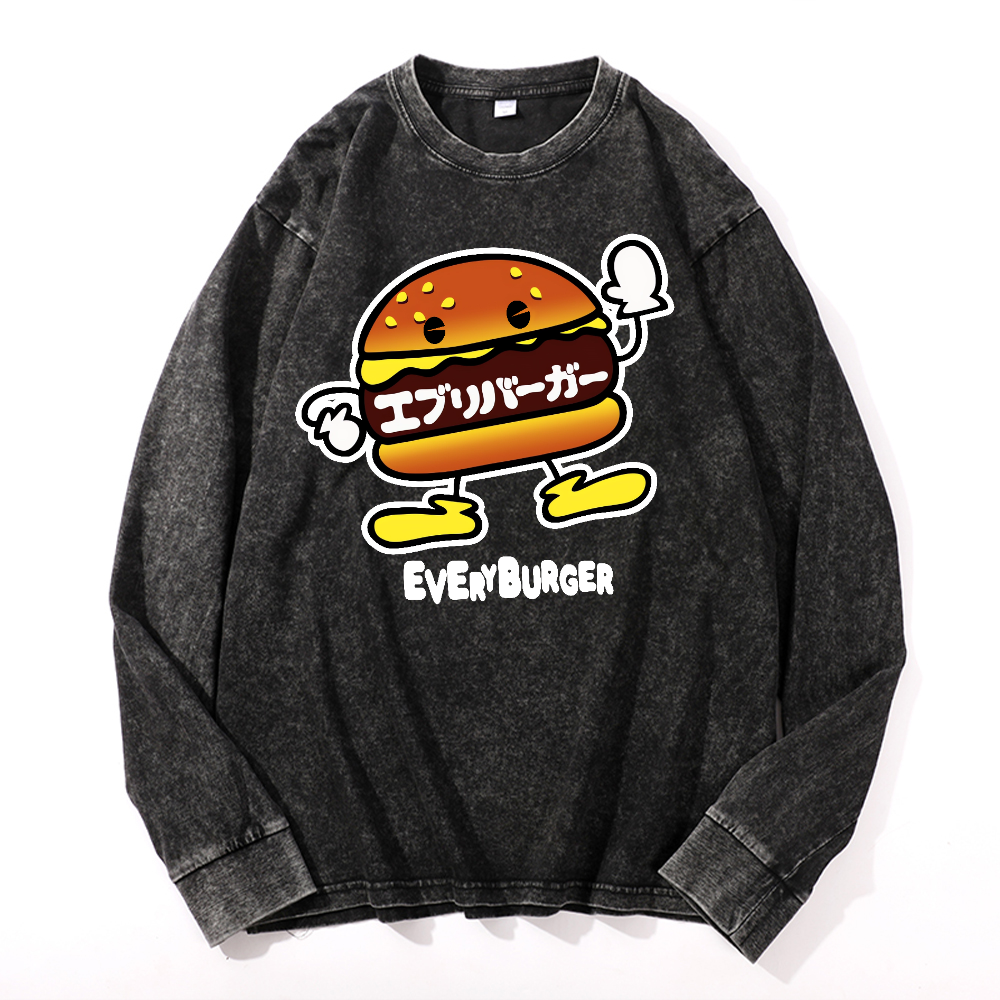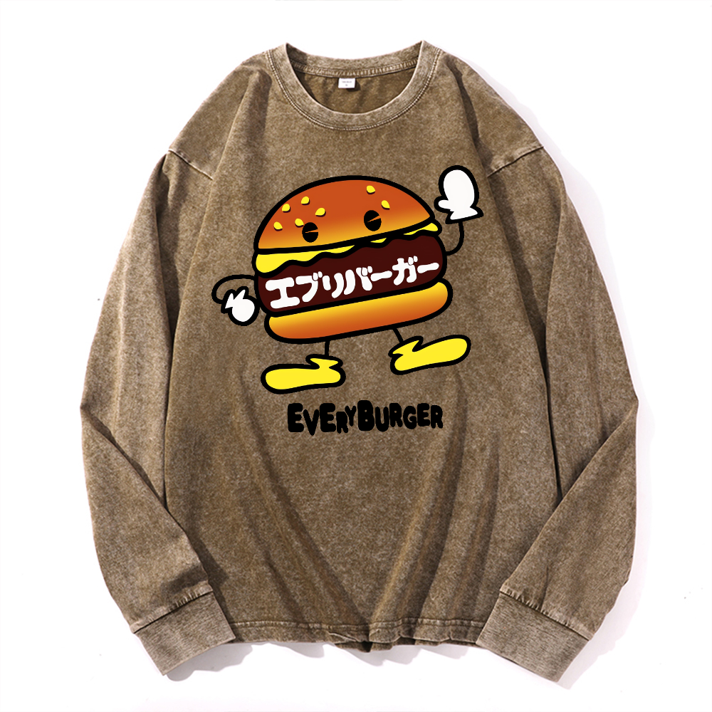Burger Vintage Cotton Wash Crewneck Long-Sleeve T-Shirt