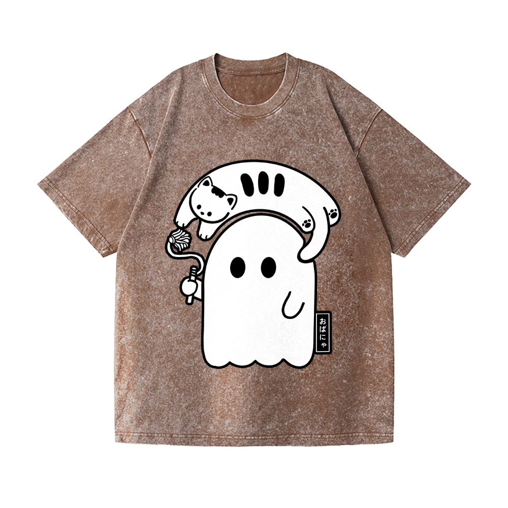 Cat and Ghost Vintage Wash Japanese Design T-Shirt