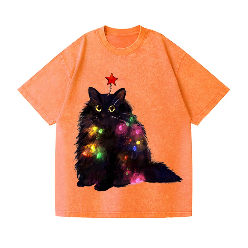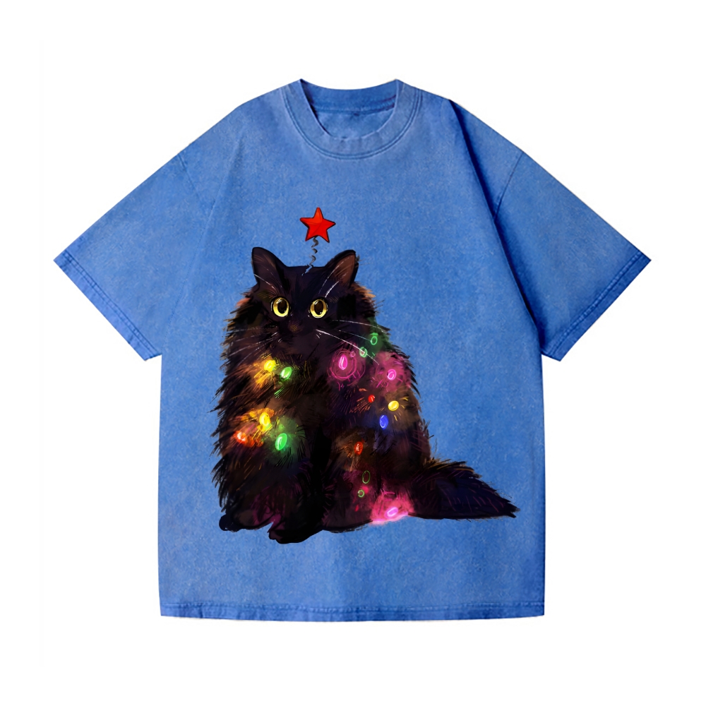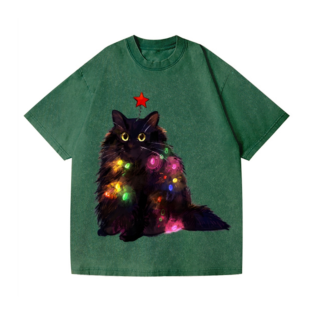 Christmas Lights Cat Vintage Wash Japanese Design T-Shirt