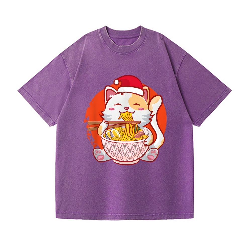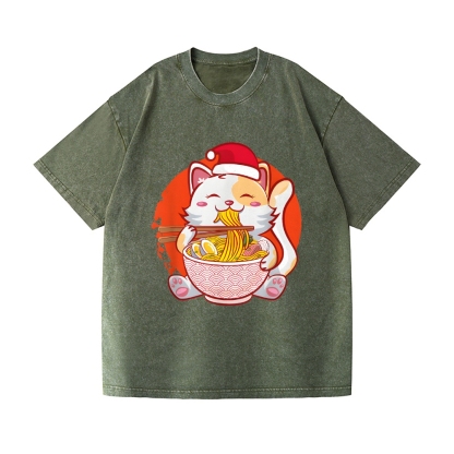 Christmas Ramen Cat Vintage Wash Japanese Design T-Shirt