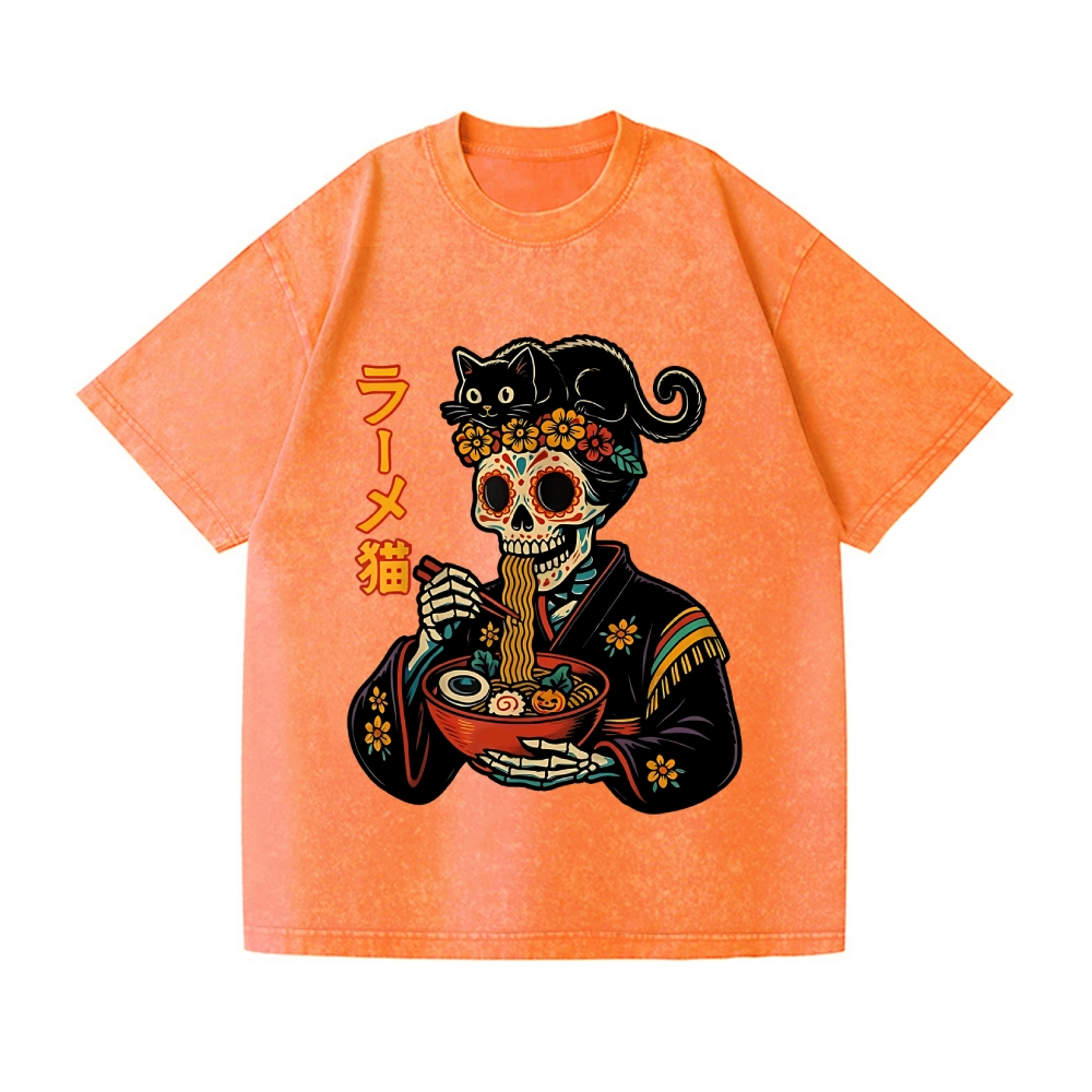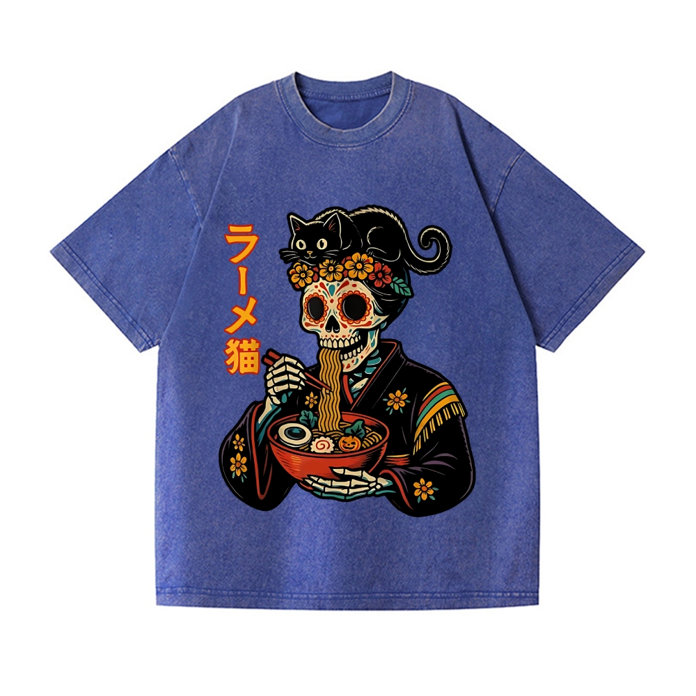 Dead Geisha Skeleton Eating Ramen Vintage Wash Japanese Design T-Shirt