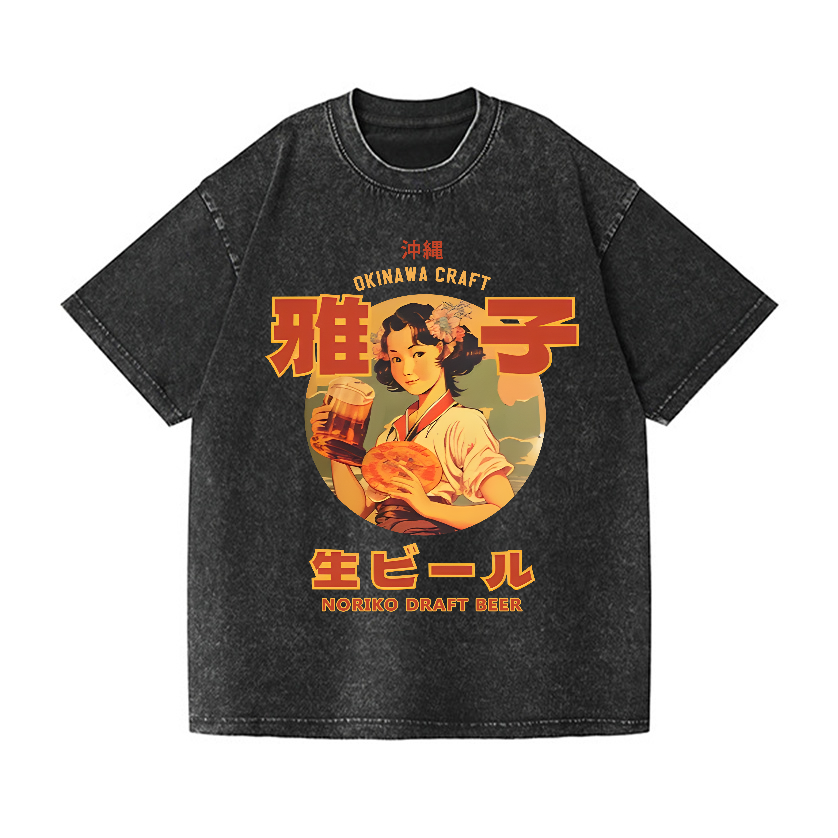 Noriko Draft Beer Vintage Wash Japanese Design T-Shirt
