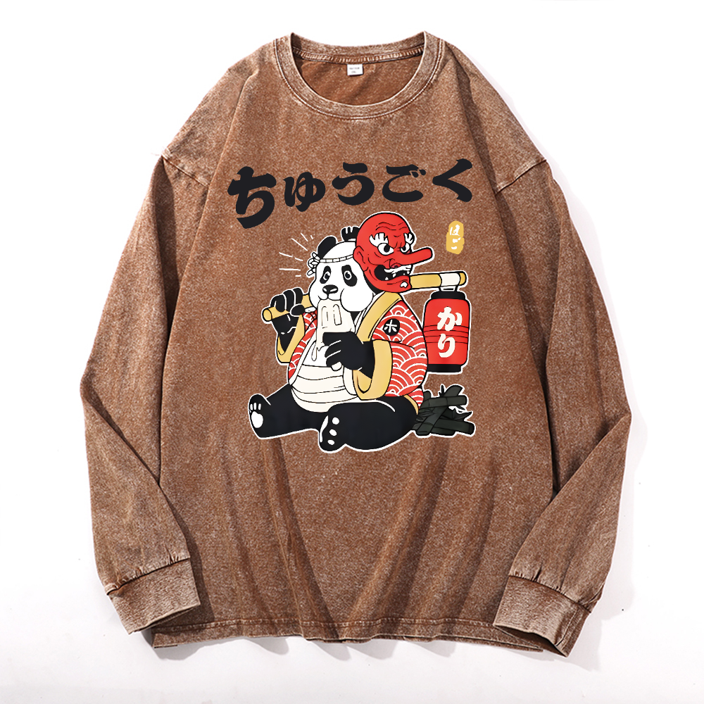 Panda Vintage Cotton Wash Crewneck Long-Sleeve T-Shirt