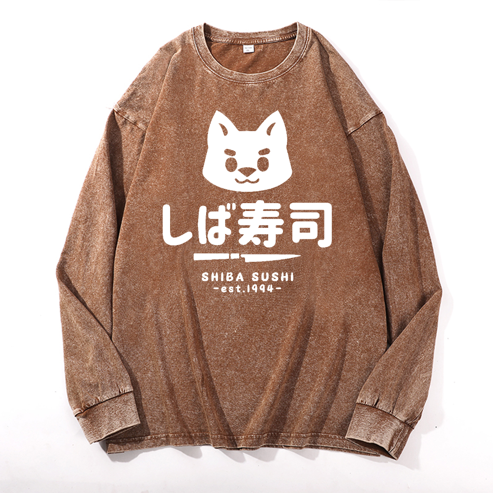 Shiba Sushi Vintage Cotton Wash Crewneck Long-Sleeve T-Shirt