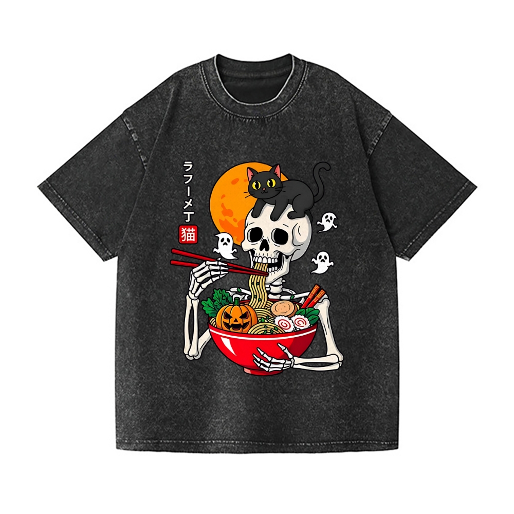 Skeleton Ramen Vintage Wash Japanese Design T-Shirt