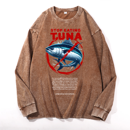 Stop Eating Tuna Vintage Cotton Wash Crewneck Long-Sleeve T-Shirt