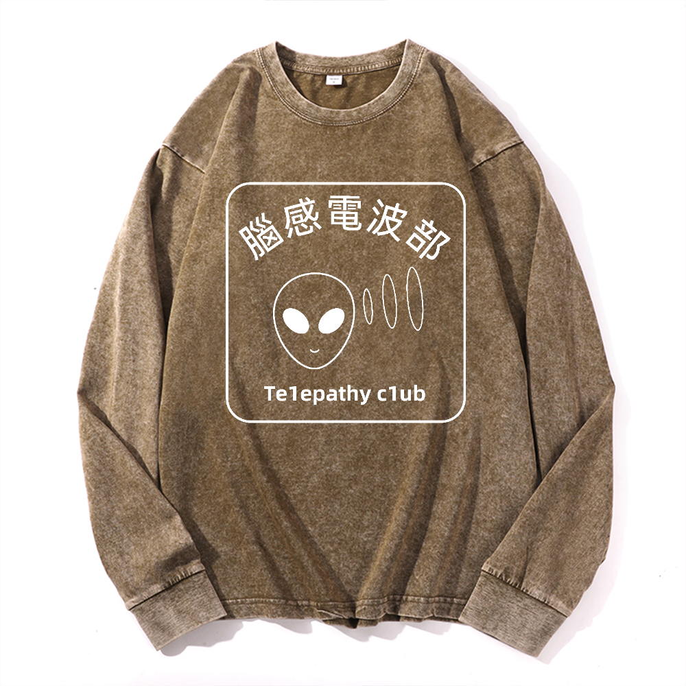 Telepathy Club Vintage Cotton Wash Crewneck Long-Sleeve T-Shirt