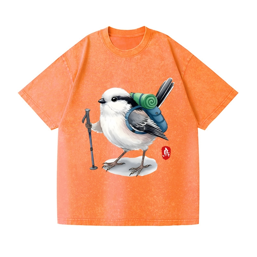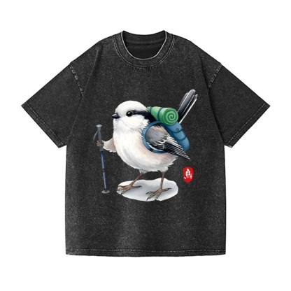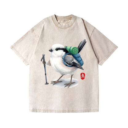Titmouse Bird Vintage Wash Japanese Design T-Shirt