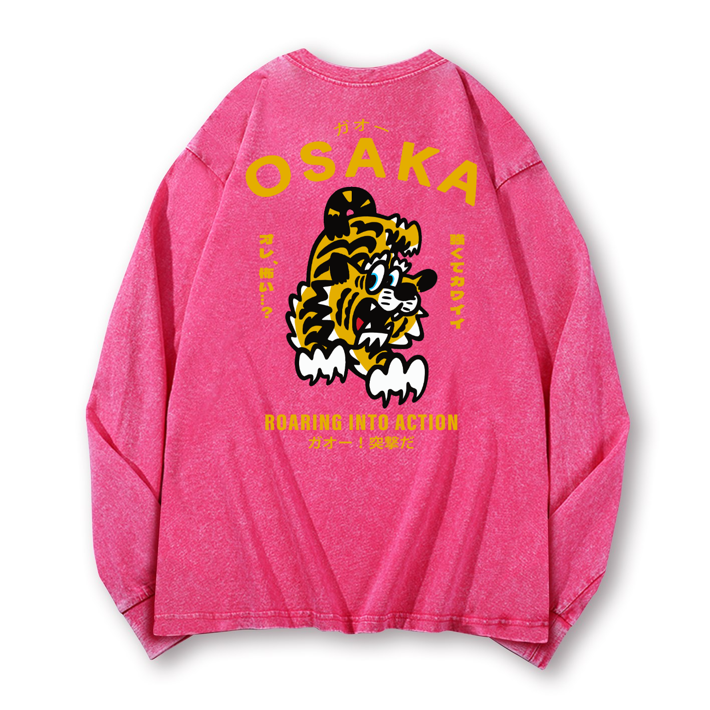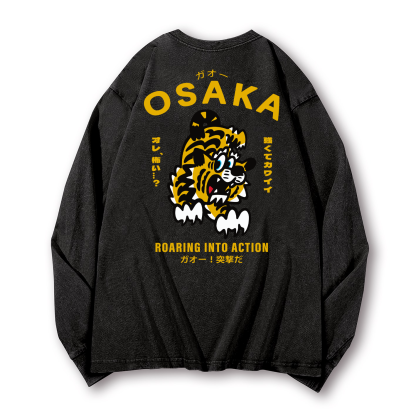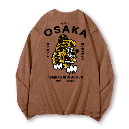 Osaka Tiger Vintage Washed Cotton Back Art Long-sleeve T-shirt