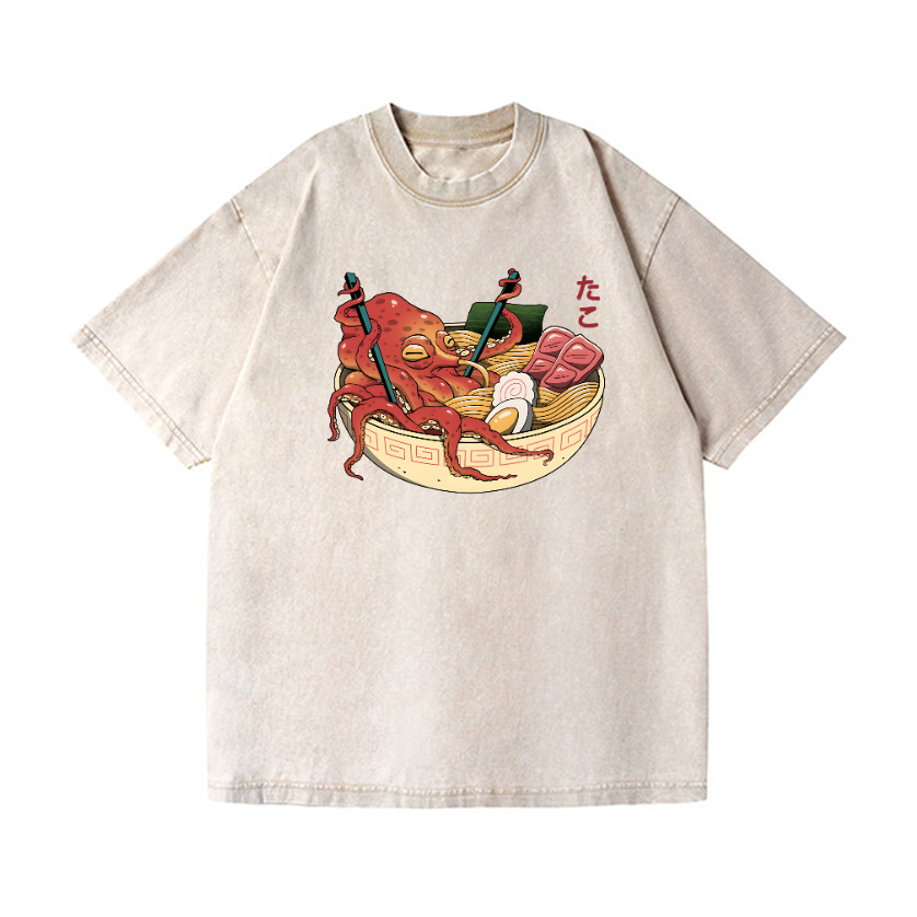 Ramen Octopus Vintage Wash Japanese Design T-Shirt