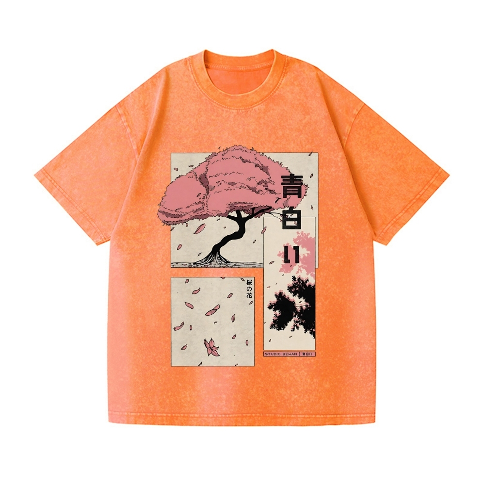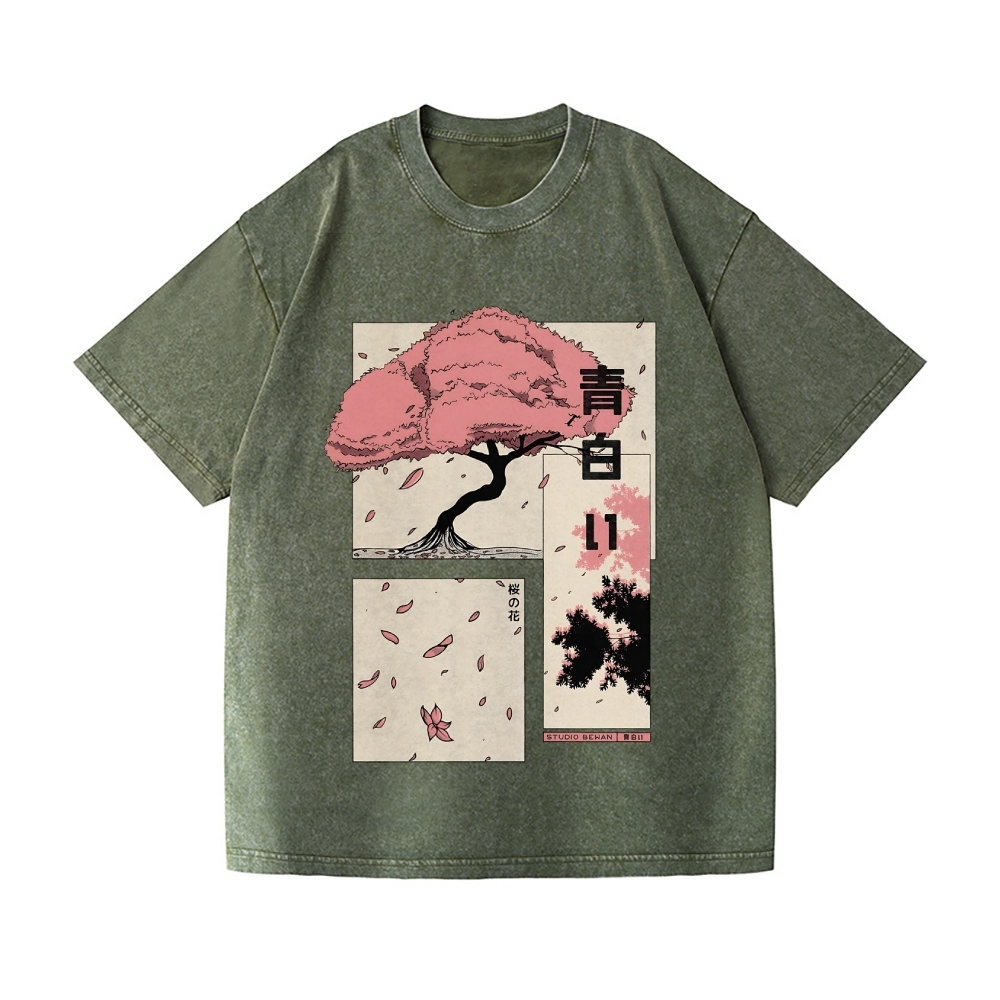 Sakura Cherry Blossom Vintage Wash Japanese Design T-Shirt