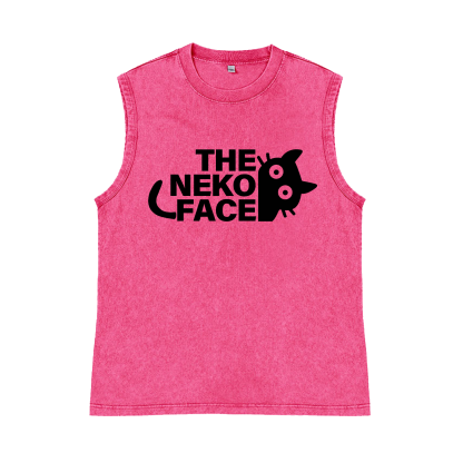 The Neko Face Pure Cotton Wash-Dyed Sleeveless Tank Top