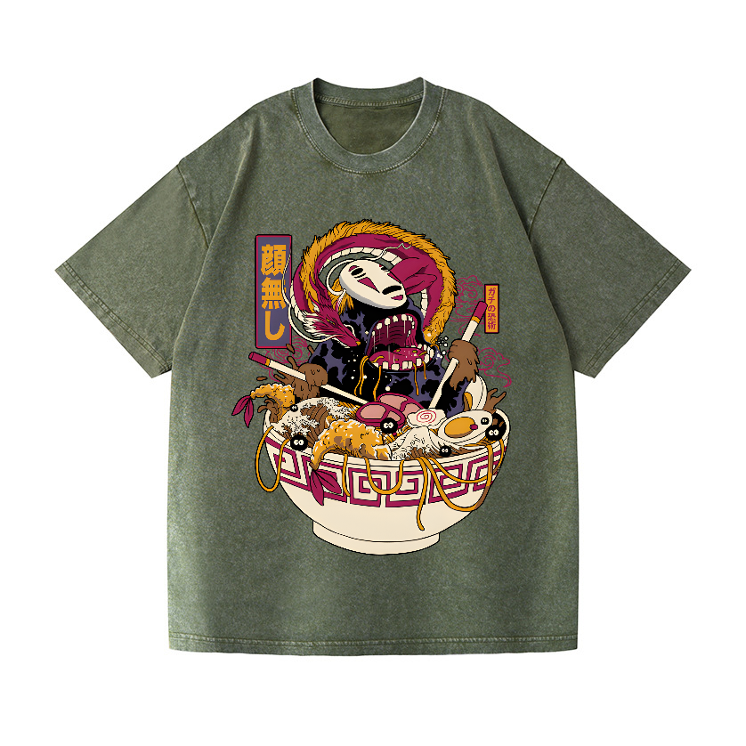 No Face Kaonashi Ramen Vintage Wash Japanese Design T-Shirt