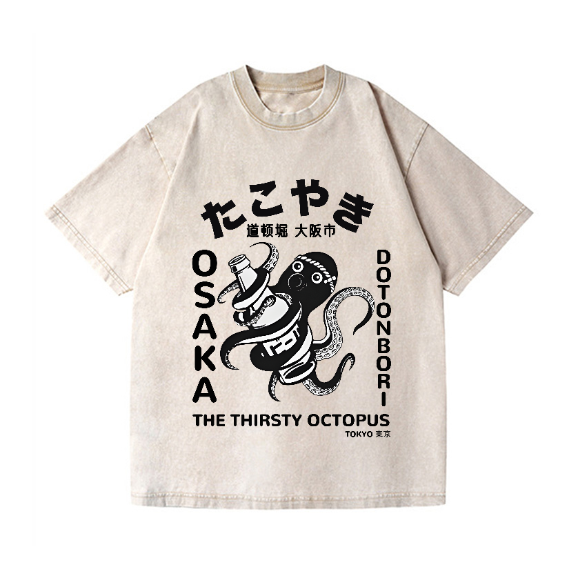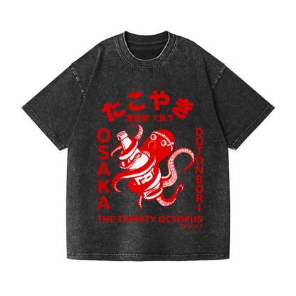Osaka Dotonbori Octopus Vintage Wash Japanese Design T-Shirt