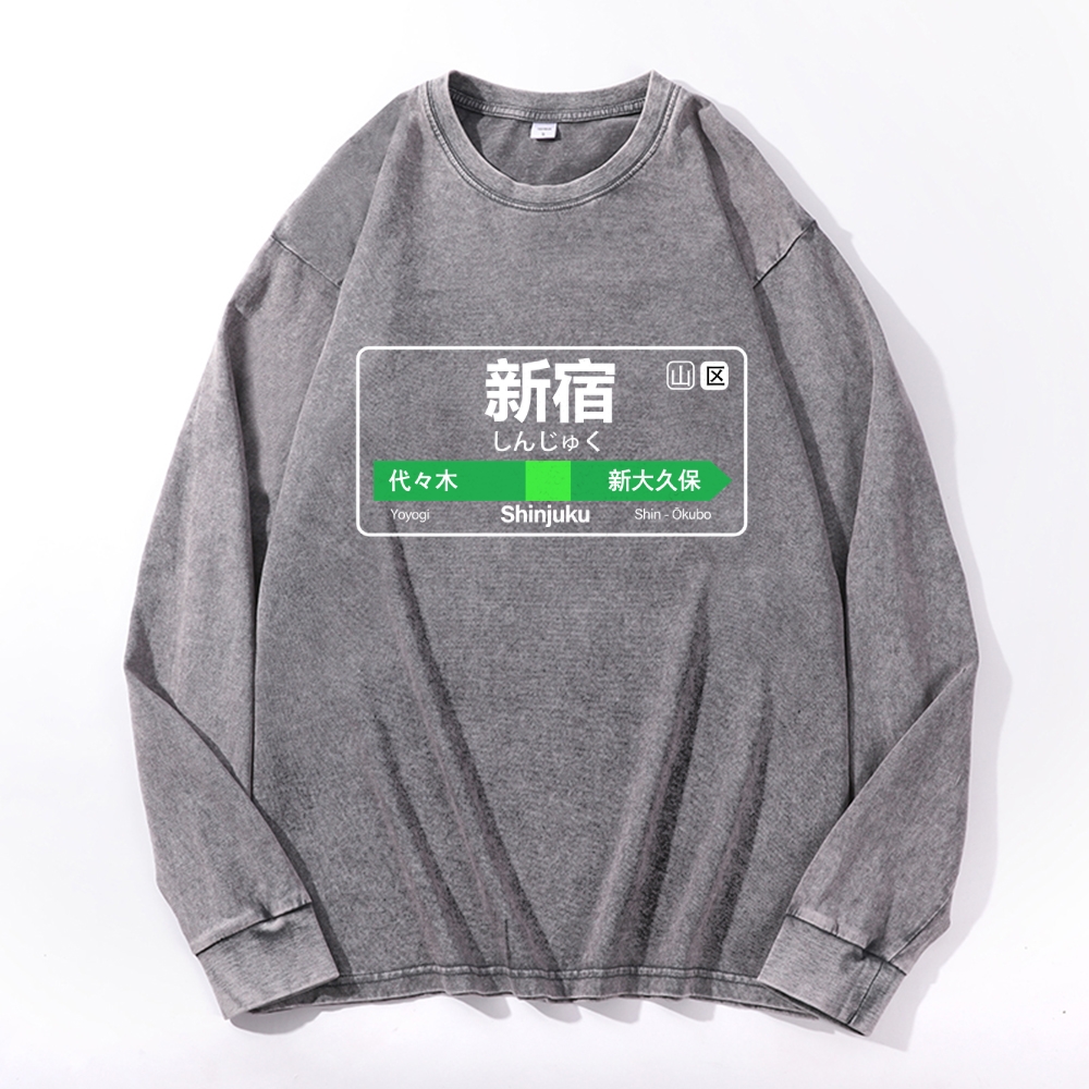 Shinjuku Vintage Cotton Wash Crewneck Long-Sleeve T-Shirt